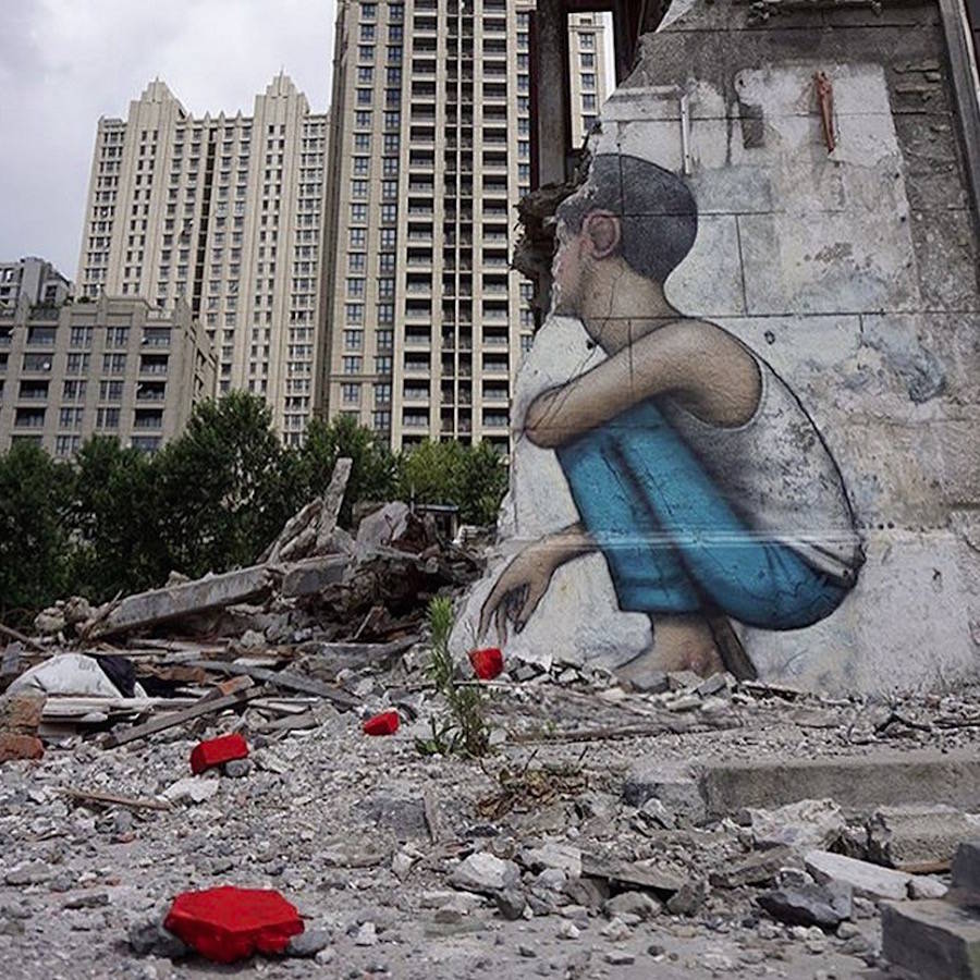 國際知名的法國巴黎街頭藝術家Julien Seth Malland(又名Seth Globepainter),Julien Set Malland的作品通常包含著憂郁的兒童和彩虹這兩個元素。作品所展示的畫面,觸動視覺。他們背對著大眾,背對著整個城市,注意力完全被艷麗的色彩所吸引,直至融入其中,不為所動。