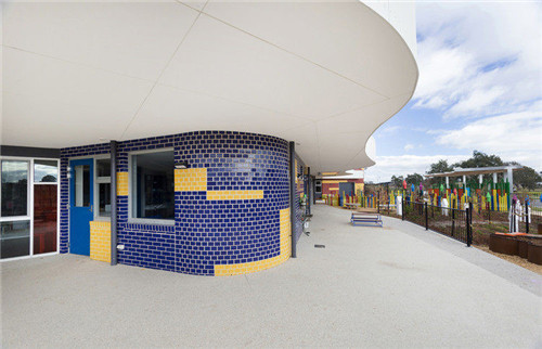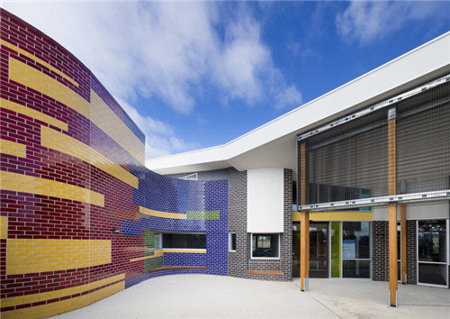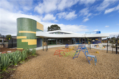 Hazel Glen兒童家庭中心使用釉磚拼圖創(chuàng)造出一種有活力的效果,加上豐富的木材表達(dá),共同構(gòu)筑一個熱情的家庭中心。這個藝術(shù)式的建筑包括四個兒童保育室、婦幼健康咨詢室、大小不一的活動室以及一個靈活的中心集合空間。