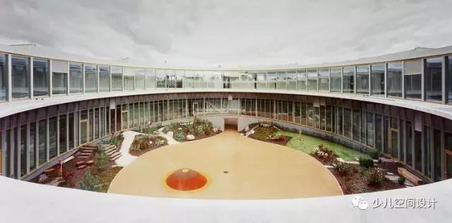 在同一建筑的首層,小圓一般由教室 - 陽臺組成。 他們在最年輕和最年長的學生之間形成一種持續的關系和發展紐帶。從一樓的走廊來看,小孩子的游樂場是開放的場景,以及小孩子們可以看到比他們更大的孩子們所進行的學校活動。