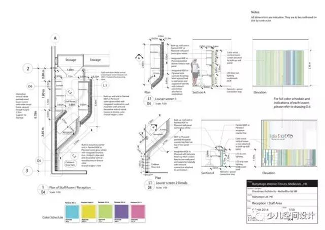 幼兒樂園將圍繞游戲、音樂和藝術(shù)進(jìn)行設(shè)計(jì),為了確保每個(gè)孩子健康的心理成長,Babysteps打算采取漸進(jìn)式的學(xué)習(xí)體驗(yàn)。所謂漸進(jìn)式的學(xué)習(xí)體驗(yàn)是指一種逐漸的、有序的學(xué)習(xí)方式,逐步訓(xùn)練孩子對(duì)各方面的認(rèn)知意識(shí)。因此,室內(nèi)設(shè)計(jì)也特意利用能激發(fā)想象力的室內(nèi)設(shè)計(jì),以供孩子的成長和探索。
